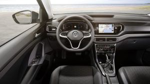 El interior del Volkswagen T-Cross ofrece una imagen desenfadada y deportiva. La línea de equipamiento Design aporta amplias posibilidades de personalización con inserciones decorativas para el salpicadero, superficies de asiento bicolores, insertos decorativos en el volante y consola central a juego, y retrovisores exteriores y ruedas en el mismo color. Están disponibles los colores negro, naranja energético y bambú. La iluminación ambiental indirecta enmarca el habitáculo de forma natural.