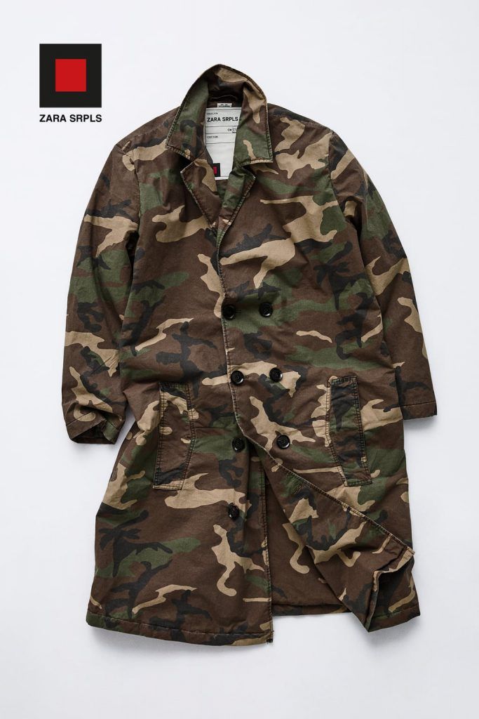 Trench largo de algodón estampado en camuflaje clásico con un acabado lavado. Cuello con solapas y manga larga . Interior forrado en camuflaje con detalle de bolsillo plastrón con botón. Bolsillos exteriores de vivo. Bajo con abertura central en espalda. Cierre frontal cruzado con botones.