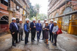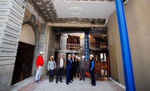 El alcalde Augusto Hidalgo, y los concejales Javier Doreste, Pedro Quevedo, José Eduardo Ramírez y Mercedes Sanz, conocieron esta mañana el desarrollo de las obras de este emblemático inmueble acompañados por el copresidente del grupo Barceló, Simón Pedro Barceló