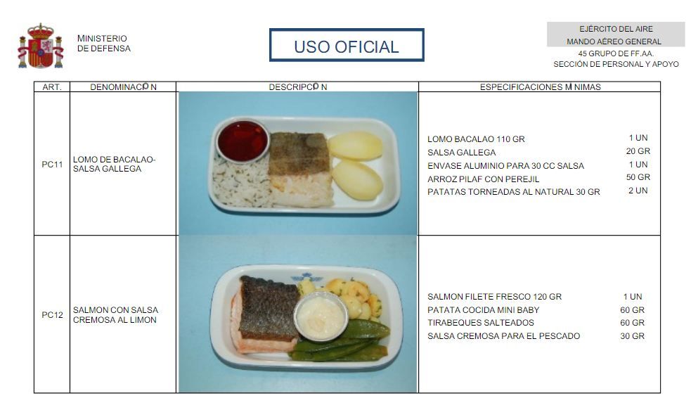 Si los miembros del Gobierno son más partidarios del pescado, la carta de los aviones oficiales también contempla suculentos platos: