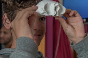 En el taller, el simulador de laparoscopia permite a los jóvenes actuar como auténticos cirujanos, manejando pinzas de laparoscopia, y guiándose de la imagen representada en la pantalla del ordenador.