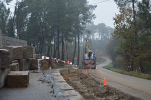Por el momento se ha iniciado la construcción de las aceras a la altura del parque infantil de Torroso y se encuentra en ejecución un muro junto al Cementerio Municipal de Torroso. La semana próxima se iniciarán las labores de tala necesarias para la acometida de la senda.