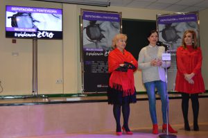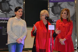 Mos, 15 de enero de 2019.-La alcaldesa de Mos, Nidia Arévalo, el concelleiro de Educación mosense, Camilo Augusto, y la diputada de Igualdad de la Diputación de Pontevedra, Isaura Abelairas, acompañaron esta mañana al alumnado del IES de Mos en el salón de actos del centro educativo durante una acción incluida dentro de la iniciativa provincial MUJERES EN ACCIÓN #ViolenciaZero. También estuvo presente a abogada del CIM -Centro de Información a la Mujer-, del Concello de Mos, Ana María Rodríguez Cabaleiro.