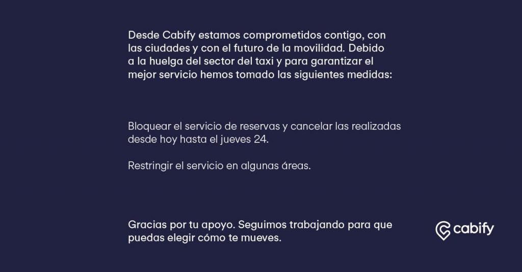 Además, Cabify, ha modificado algunas de las condiciones de su servicio: