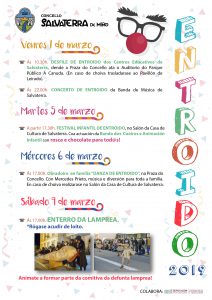 El miércoles 6 de marzo, se realizará un Obradoiro sobre‘Danza de Entroido’ en la plaza del Ayuntamiento, con Mercedes Prieto, y con música y entretenimiento para toda la familia. En caso de lluvia, se desarrollará en la Casa de Cultura de Salvaterra.