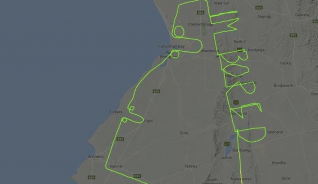 Un piloto de Adelaide, Australia, se ha convertido en toda una celebridad en las redes sociales después de que se hiciera público la ruta que marcó con su aeronave.