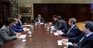 El presidente de Canarias, Fernando Clavijo, junto con el director de la Agencia Canaria de Investigación, Innovación y Sociedad de la Innovación del Gobierno de Canarias, Manuel Miranda, recibieron en la mañana de hoy a directivos de la compañía aeronáutica española, Babcock España y a la empresa Airbus Defence and Space; que tras la presentación en la segunda semana de febrero de Canarias Geo Innovation Program 2030 en el evento de la Agencia Espacial Europea HASP4ESA 2019 en Holanda, han querido mantener una reunión con los promotores de la iniciativa.