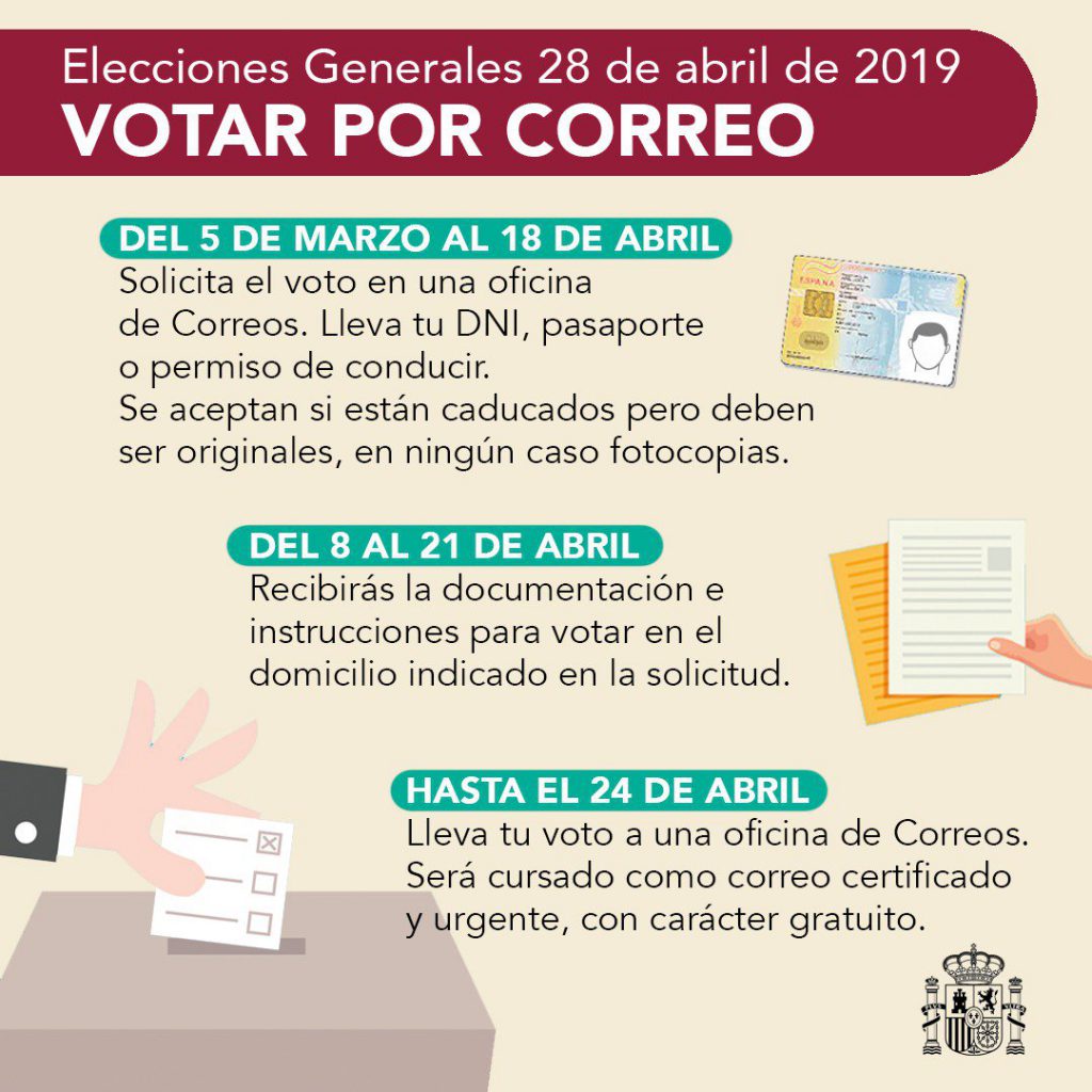 El plazo para solicitar el voto a distancia termina diez días antes de la cita con las urnas: el 18 de abril. Para hacerlo hay que acercarse a una oficina de Correos con el DNI, pasaporte o permiso de conducir.