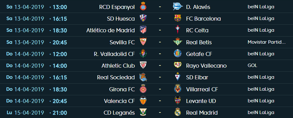 Los partidos de la jornada 32 son los siguientes: