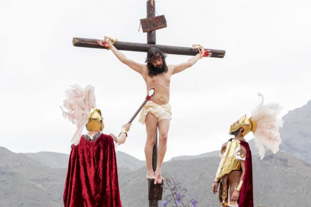 La representación de La Pasión de Jesús en Adeje ha vuelto a ser un éxito hoy, viernes 19 de abril, tanto en la realización como en asistencia de público, consolidándose como referente en la Semana Santa en Canarias. Unas 200 personas del pueblo han actuado en esta gran obra de teatro de temática religiosa, miles de personas se han desplazado hasta el municipio sureño para ver en vivo esta magna obra de teatro, y un número elevado difícil de determinar, lo han seguido en Canarias, la Península y el extranjero a través de la televisión y las redes sociales. La representación ha transcurrido sin incidencias, bajo un mar de nubes que han permitido un desahogo a los actores, actrices y público que otros años han soportado el intenso calor de estas fechas.