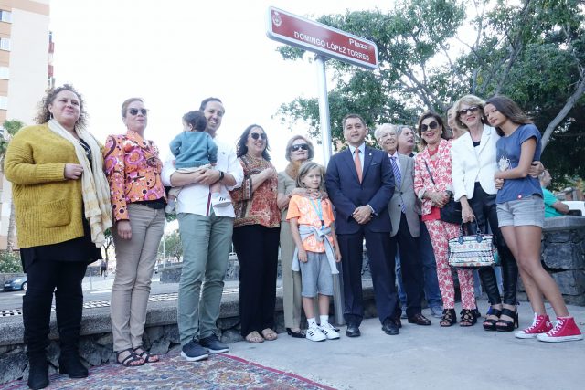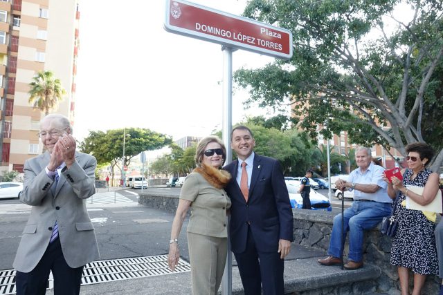 El alcalde de Santa Cruz de Tenerife, José Manuel Bermúdez, presidió hoy el acto de descubrimiento de la placa por el que una plaza de Los Gladiolos llevará el nombre del poeta y concejal republicano Domingo López Torres, asesinado durante de la Guerra Civil.