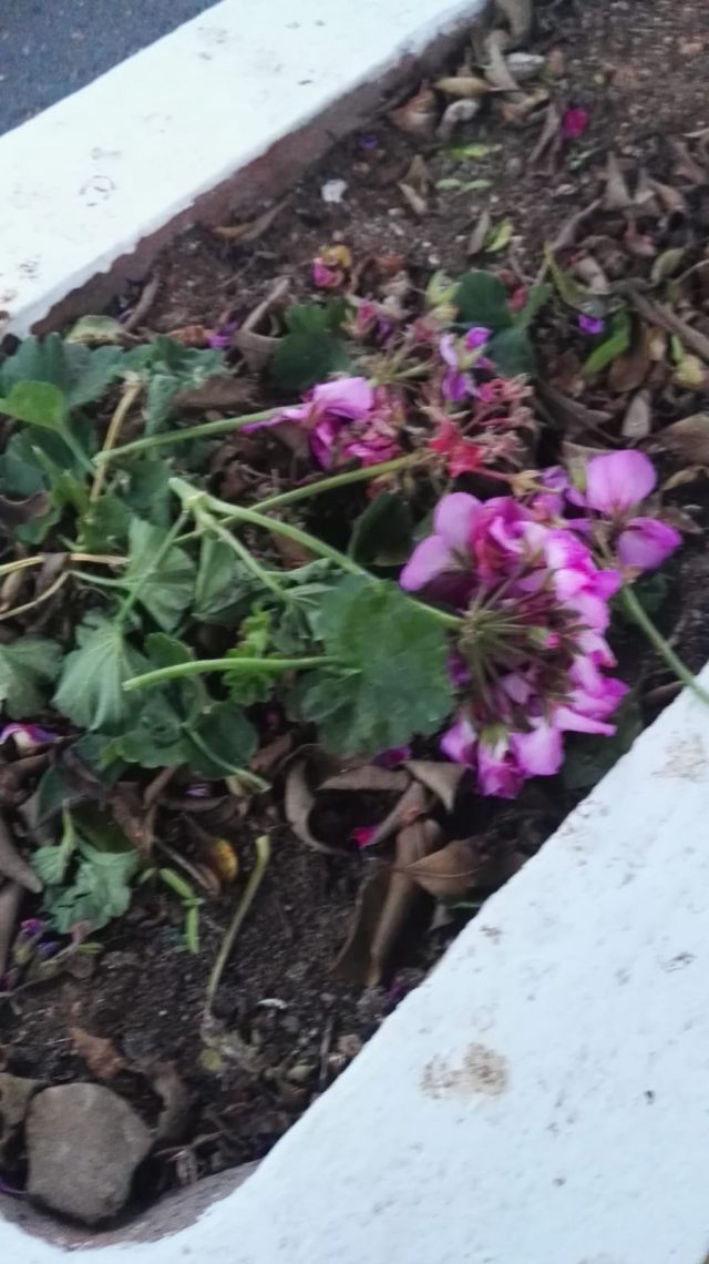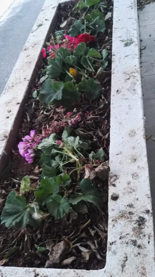 El Ayuntamiento realizó trabajos de redecoración de la plaza en el pasado mes de mayo con la plantación de diferentes plantas ornamentales y flores como, en este caso, geranios.