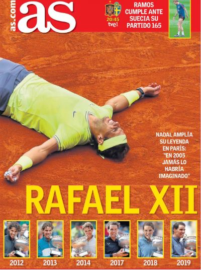Tras conquistar su decimosegundo Roland Garros y sumar 18 títulos de Grand Slam en su carrera, la prensa deportiva se rinde a Rafa Nadal con titulares épicos.