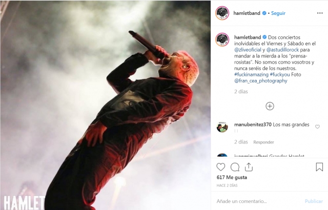 "Dos conciertos inolvidables el Viernes y Sábado para mandar a la mierda a los “prensa-rosistas”. No somos como vosotros y nunca seréis de los nuestros", escribió el heavy.