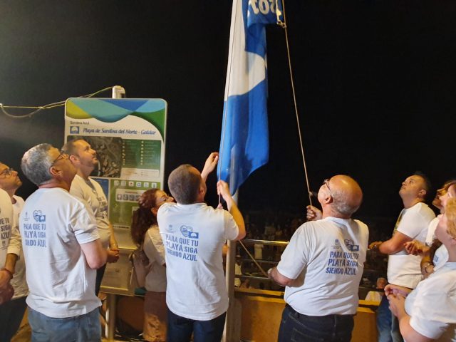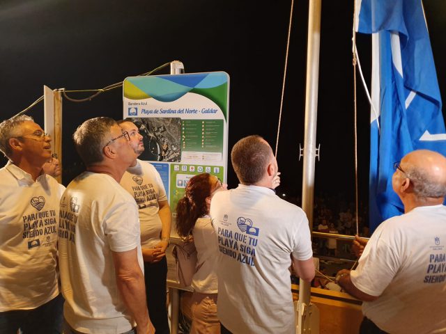 El Ayuntamiento de Gáldar quiso hacer coincidir esta noche sanjuanera con la izada de la Bandera Azul para la Playa de Sardina, galardón que ha sido concedido por tercer año consecutivo en reconocimiento a la calidad de las aguas y al esfuerzo que realizan año tras año los Ayuntamiento en dotar a sus playas de las instalaciones, servicios y actividades necesarias para poner a disposición de los usuarios, ciudadanos y turistas unas playas de muy alta calidad.