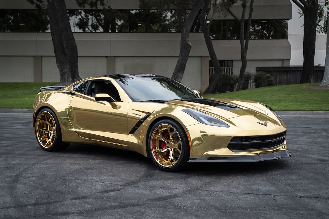 Un Corvette C7 Stingray chapado en oro ha entusiasmado a los internautas por el desmesurado lujo de sus detalles.