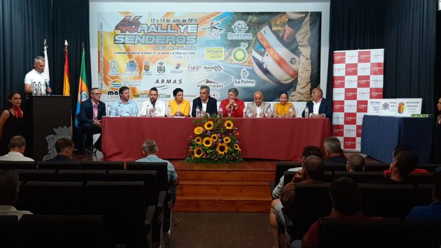 Teniendo como marco la Casa de La Cultura de Los Llanos de Aridane en La Palma, tuvo lugar la presentación oficial del 46º Rally Senderos de La Palma, ante una multitudinaria presencia de pilotos y aficionados. Las autoridades que presidieron la mesa, fueron las siguientes; Noelia García Leal, alcaldesa de Los Llanos de Aridane, Jesús María Armas Domínguez consejera Cabildo Insular de La Palma, Lorena Hernández Labrador, concejal de deportes, Daniel Martín Martín concejal deportes de El Paso, Luis Antón Gorgoroso representante de BP, Víctor González González representante de Naviera Armas, Roberto Pérez Vicepresidente de la FCA, Pedro Pérez Camacho "Madalú" presidente de la FIALP y Julio García Cruz Director de Carrera y miembro del Comité Organizador de la Escudería Revys Motorsport.