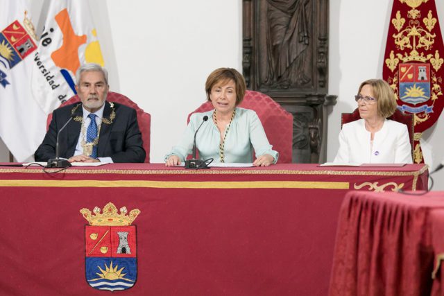 La rectora de la Universidad de La Laguna inició su intervención indicando que tenía mucho interés en acudir a este acto para poder conocer de primera mano la buena relación y buen hacer de estos cursos estivales. Recordó sus propios orígenes en La Gomera para resaltar que es consciente de la importancia que tiene que la universidad llegue a todos los lugares que le sea posible.