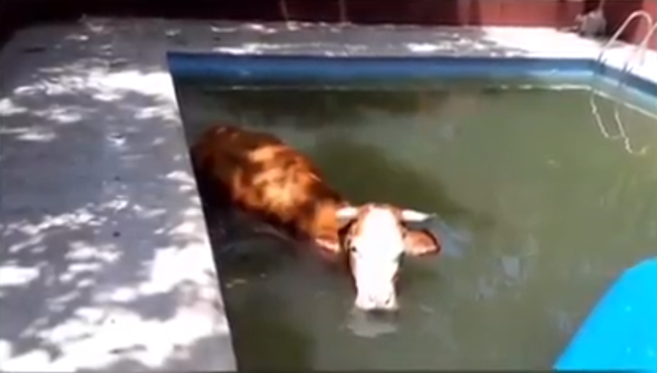 La mujer había abandonado el domicilio el sábado por la noche y el lunes recibió una llamada de la Policía Local informándole de la presencia de la vaca en el interior de su piscina. "Enseguida avisamos a un conocido que vive cerca y nos mandó una foto confirmándonos que era cierto", explicó.