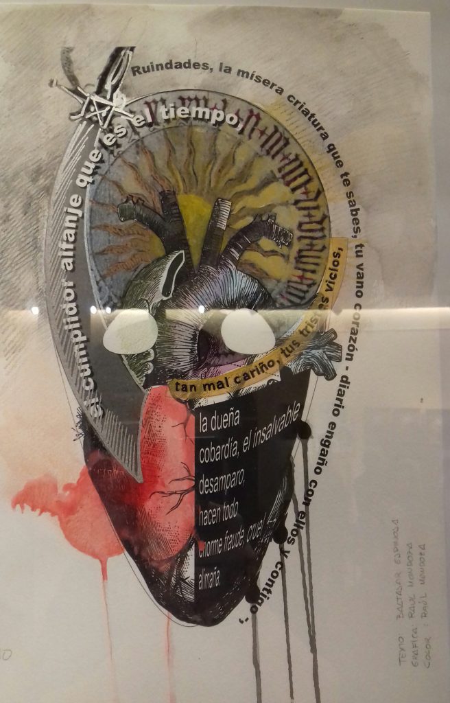 Realizado por el profesor de baile tradicional canario y etnógrafo Jorge Guzmán Villegas, el escaparate asimismo exhibe un gran número de fotografías realizadas por el fotógrafo Fran Hernández a lo largo de la última década de romerías del Pino en Teror, extraídas de las 250 mil que posee dicho fotógrafo de las populares fiestas marianas.