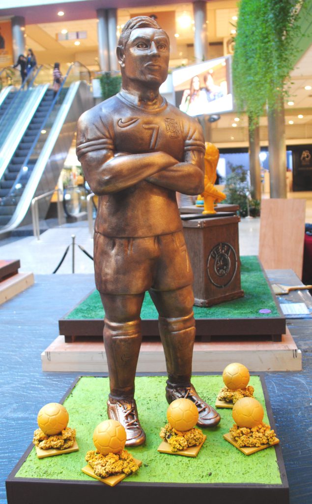 Los amantes del deporte rey se podrán hacer fotos con la Champions, la Copa del Mundo, el balón y la bota de oro, y con el mismísimo Cristiano Ronaldo, una escultura de un metro de altura y 75 kilos de peso que vuelve cerca del Santiago Bernabéu.