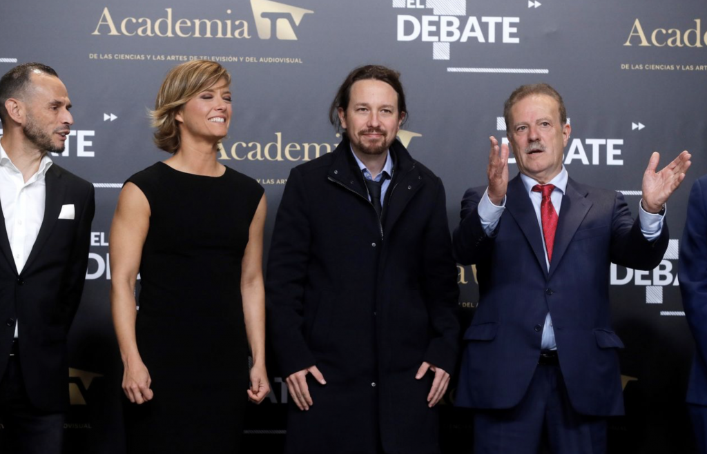 Santiago Abascal, Pablo Iglesias, Pablo Casado, Albert Rivera y Pedro Sánchez posaron en el photocall de RTVE antes de participar en el debate electoral de este lunes, 4 de octubre.