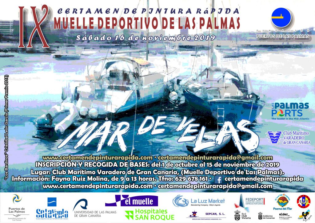 El Certamen de Pintura Rápida ‘Mar de Velas’, organizado por la Fundación Puertos de Las Palmas, llega a su novena edición. La edición de 2019 tendrá lugar, como en años anteriores, en el privilegiado espacio de Marina Las Palmas (Muelle Deportivo), coincidiendo con la XXXIV edición de la la regata ARC. El certamen se celebrará, concretamente, en la jornada del próximo sábado, 16 de noviembre.