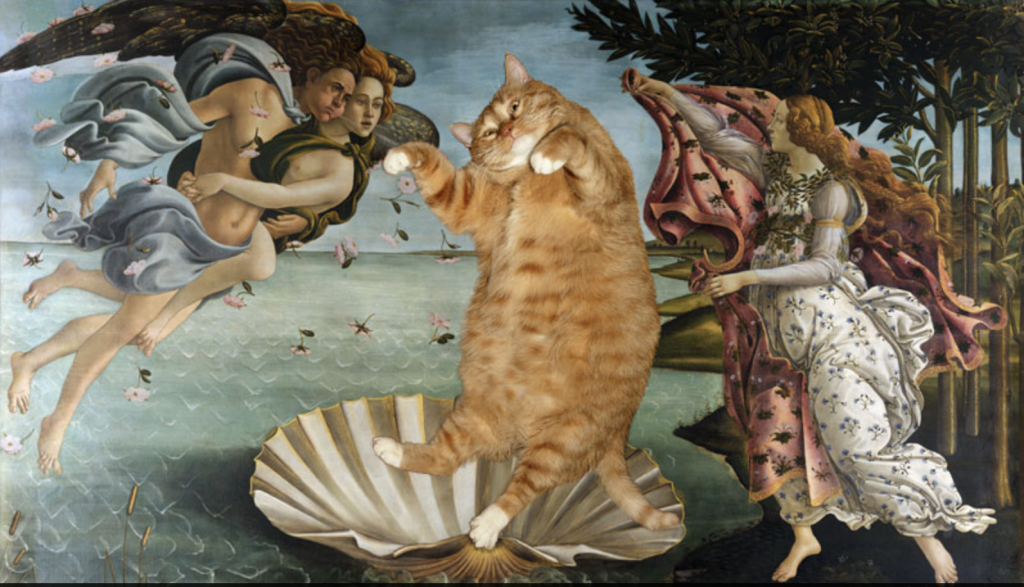 Petrova y Zarathustra han recreado”más de 150 pinturas y las han compilado en un libro titulado “Fat Cat Art: Famous Masterpieces Improved by a Ginger Cat with Attitude”.