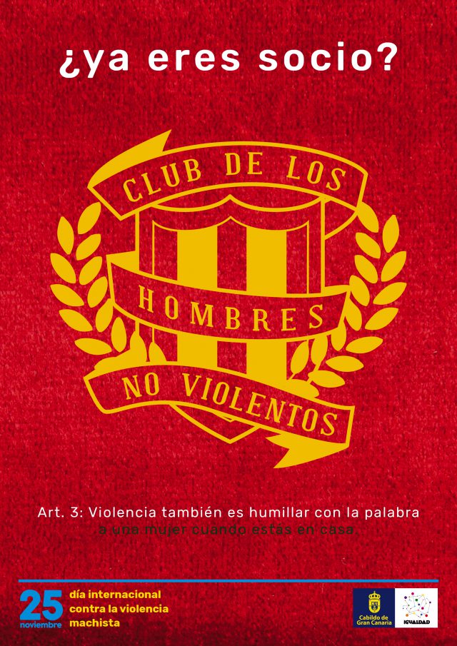 El Cabildo de Gran Canaria lanza la campaña ‘El club de los hombres no violentos’ con motivo del Día Internacional contra la Violencia Machista para cambiar el enfoque habitual y no centrarse en las mujeres, sino invitar a los hombres a que se unan a este club para transformar su forma de pensar y de actuar.