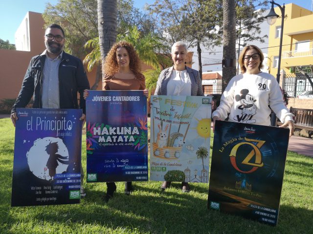 La Plaza de La Candelaria de Ingenio se convertirá durante tres días en una gran sala de teatro, con 700 butacas, que acogerá los tres espectáculos que conforman el cartel del II Festival de Teatro Infantil de la villa, destinados al público familiar y que ha sido presentado este martes por la alcaldesa de Ingenio Ana Hernández, la concejala de Festejos Lorena Quintana, el director de teatro Israel Reyes y la gerente de Camino Viejo Producciones, Nati Santana.