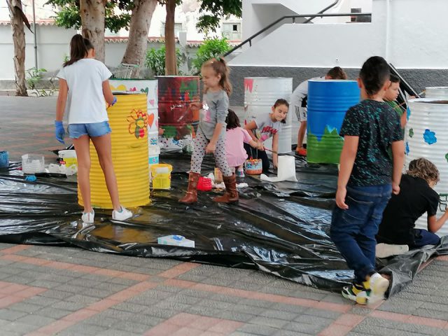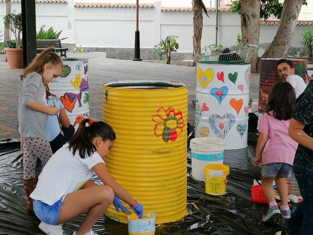 Villa de Agaete, 27 de diciembre de 2019.- Durante tres días, los niños han sido los grandes protagonistas en Agaete. Justo durante los días 23, 26 y 27 se han empleado a fondo volcando toda su creatividad en diez bidones destinados por el Ayuntamiento de Agaete para una campaña especial de mentalización de recogida de residuos. Los bidones, convenientemente pintados, serán instalados en varios puntos del curso del Barranco de Agaete hasta su desembocadura a Las Salinas.