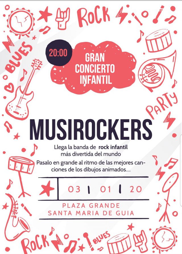 La noche festiva de este viernes en Guía continuará en la Plaza Grande de la Ciudad con el Concierto Navideño de La Trova a partir de las 21.00 horas, un concierto muy especial para celebrar estas fiestas navideñas. Como especial será también el que ofrecerá un poco antes, a las 20:00 horas, el grupo Musirockers, la banda de rock infantil más divertida del mundo que sonarán al ritmo de las canciones de los dibujos animados preferidos de los niños.