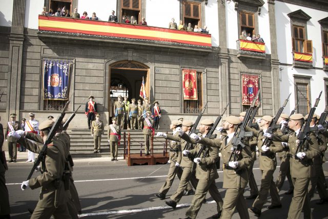 Los actos comenzaron con una Parada Militar en la Plaza de Weyler, donde participó una Unidad de Honores constituida por Mando, Escuadra de Gastadores, Bandera y una compañía del Regimiento de Infantería “Tenerife” nº 49, además de la Banda de Guerra nº 2 de la Brigada “Canarias” XVI y Música del Mando de Canarias. Seguidamente, se desarrolló una Recepción Institucional en el Salón del Trono del Palacio de Capitanía, donde el teniente general Palacios pronunció un discurso de felicitación en nombre de Su Majestad el Rey.
