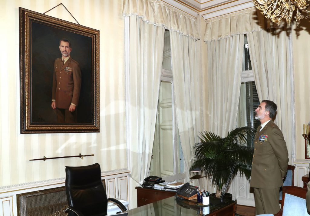 S.M. el Rey Felipe VI, ha podido contemplar, por fin, su retrato oficial, en el Ejército de Tierra, el pasado lunes 27 de enero. La obra, realizada por el prestigioso pintor malagueño Antonio Montiel, especialista en el retrato, se encuentra en el despacho del Jefe del Estado Mayor del Ejército de Tierra, General Francisco Javier Varela Salas, ubicado en el Palacio de Buenavista de la capital de España.