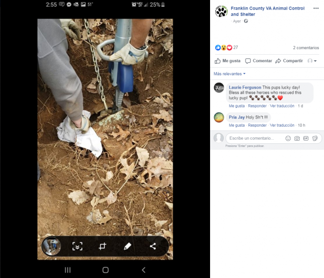 Una protectora de animales del estado de Virginia (EEUU) rescató a un perro atrapado en el interior de un coche enterrado bajo tierra en una propiedad privada del condado de Franklin.