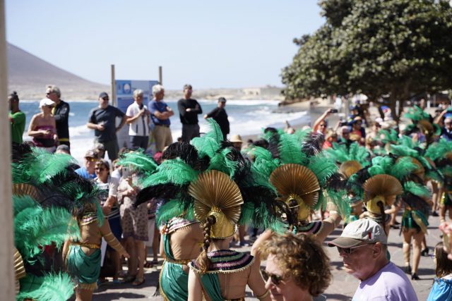 Pasadas las 11.00 horas comenzó el espectáculo con el pasacalle desde Playa Chica que llenó de música y fantasía este rincón costero con los grupos del municipio: las comparsas Kuliquitacas del Sur y Los Guajeiros, y las batucadas Blanquisur y Guajeiros. En la plaza central fueron recibidos por Olga y Güícho, que fueron los encargados de animar y amenizar el concurso de disfraces, aparte de los talleres, juegos infantiles e hinchables que hubo para los más pequeños hasta media tarde.