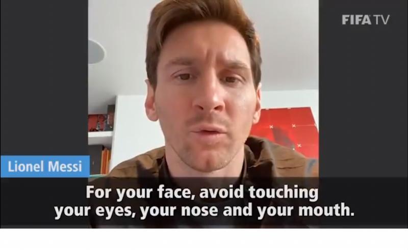 "Respecto a la cara, evita tocarte tus ojos, nariz y boca. Así puedes evitar que el virus entre en tu cuerpo", dice Messi en el vídeo de la FIFA y la OMS, y en el que futbolistas ofrecen consejos en varios idiomas para contener la pandemia.