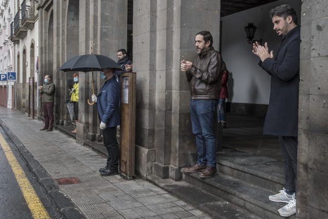 En la mañana de este martes, los miembros de la corporación y el personal municipal que continúa desarrollando su labor de manera presencial se han concentrado en la fachada del ayuntamiento para brindar un aplauso de reconocimiento a cuantos continúan desarrollando su trabajo, tanto en las oficinas municipales como desde sus hogares. “Se trata”, ha explicado el alcalde, “de un mensaje de ánimo y estímulo en estos momentos de incertidumbre y de lucha colectiva”.