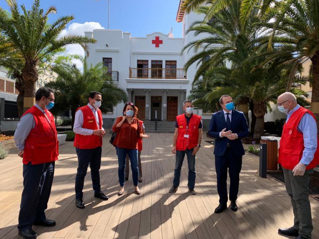 El alcalde, Augusto Hidalgo, junto a la concejala de Servicios Sociales, Carmen Luz Vargas, ha mantenido hoy un encuentro con el presidente de Cruz Roja en Canarias, Antonio Rico, y voluntarios en la sede de la entidad para agradecer a todo el personal “la labor social fundamental” que están realizando con la población más afectada por el impacto económico provocado por virus.
