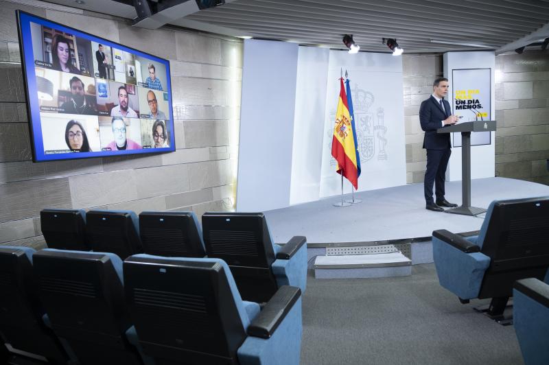 La Secretaría de Estado de Comunicación (SEC) anunció que con la entrada de la Comunidad de Madrid en la fase 1 -en la que se permiten determinadas actividades con aforo limitado en recintos cerrados-, también vuelven las ruedas de prensa presenciales a La Moncloa con el jefe del Ejecutivo, Pedro Sánchez, y el resto de miembros del Gobierno, aunque estarán limitadas a una veintena de profesionales de la información.