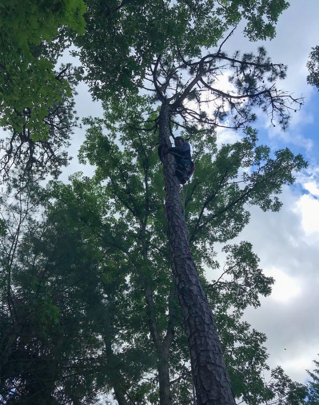 Tras ver que eran incapaces de alcanzar a la mascota, un podador profesional se ofreció a echarles una mano. el hombre, identificado como Omar, trepó por el tronco y consiguió rescatar al minino.