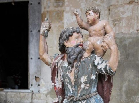 La escultura en madera policromada de San Cristóbal con el niño Jesús, de la ermita de San Cristóbal de Ullibarri Arana (8.470 euros); la puerta de madera de entrada a la ermita Nuestra Señora de Bercijana de Yécora (14.745,06 euros) y un conjunto de dos muebles contenedores de mapas que formaban parte del mobiliario de las escuelas de Llanteno realizados en 1883 (31.278,50 euros) son tres de las iniciativas.
