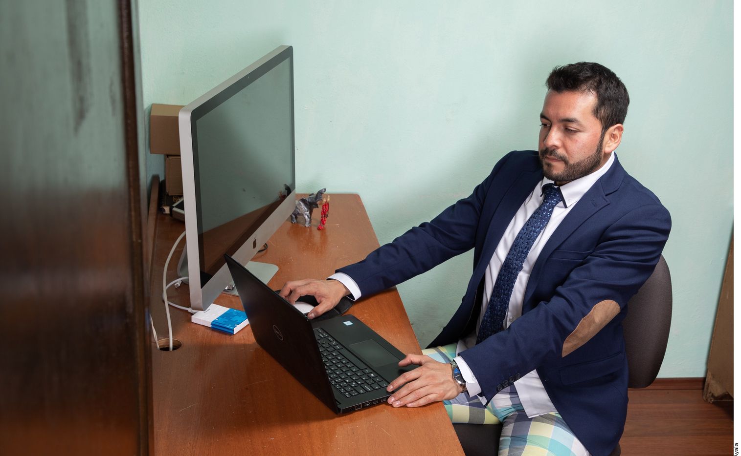 Una vez lo tengas claro, intenta evitar arreglar la parte superior, y dejar la inferior en el olvido. Resulta muy tentador al estar en casa, conjuntar una chaqueta de traje con unas bermudas, pero no es lo más adecuado. Puede que creas que toda la entrevista se va a desarrollar tranquilamente y sin moverte de tu sitio. Pero lo cierto es que no sabes si en algún momento será necesario que te levantes para ir a buscar algo que tengas que llevar ante la cámara. Por lo tanto, procura vestirte en condiciones y de arriba a abajo, igual que si hubieras ido a la oficina.