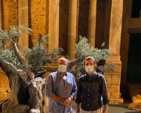 El presidente del PP, Pablo Casado, y el presidente del PP de Extremadura, José Antonio Monago, mantuvieron ayer un encuentro en Mérida, donde aprovecharon la visita del presidente de los 'populares' a Extremadura para mostrar su "apoyo" conjunto al sector cultural asistiendo a la obra "Penélope" en el teatro romano de la capital extremeña.