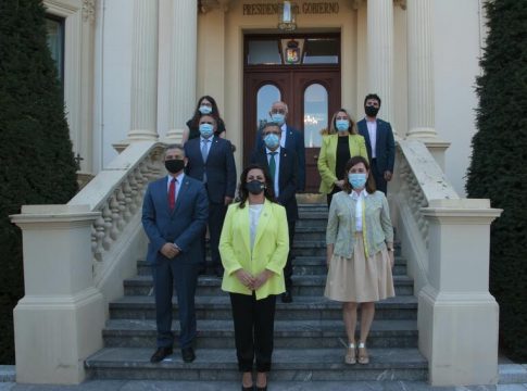 Al término del acto institucional, el nuevo Consejo de Gobierno se ha reunido de manera extraordinaria, no sin antes hacerse la tradicional foto en las escaleras del Palacio del Ejecutivo riojano.