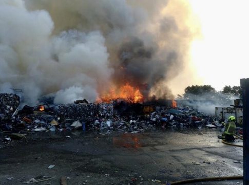 Según ha informado el Ayuntamiento de Logroño en una nota de prensa, en las tareas de extinción, entre otros, están participando efectivos del Parque de Bomberos de Logroño, que se están ocupando, apoyados por medios aéreos, de controlar el incendio para que las llamas no se propaguen a la nave principal del Ecoparque.