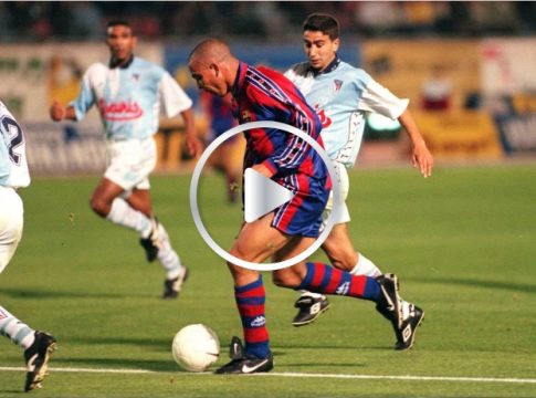 El Ronaldo que jugó en el Barcelona sin dudas fue uno de los más rápidos de la época. Cuando entraba en carrera no había forma de detenerlo sin tener que hacerle un foul que costaría una expulsión y el Valencia lo sufrió. ¡No lo pueden parar entre 4 defensores!. Y vale la pena destacar la exquisita definición del delantero brasilero.
