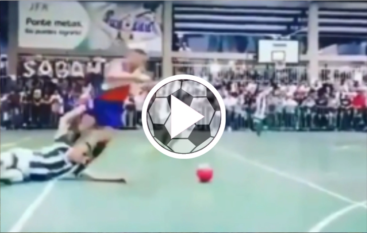 En el fútbol sala hay mucho juego rápido, de un solo toque, de movimientos rápidos de balón y que si eres el que ataca no hay problema, pero si eres el que defiende debes tener la mente fría para no hacer algo que después te puedas arrepentir. ¡Y es lo que le paso a este joven!. Le venían tocando el balón en la cara y llegó un momento en donde no se aguantó más y tiró una de esas patadas voladoras ¡Que no logra pegarle!, pero que si lo agarraba terminaban en el hospital.