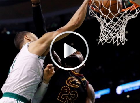 Promediando el último cuarto, Tatum se metió en la zona y realizó una volcada pasando por encima de James, dejándolo sin ningún tipo de reacción y para luego golpearlo en el pecho.