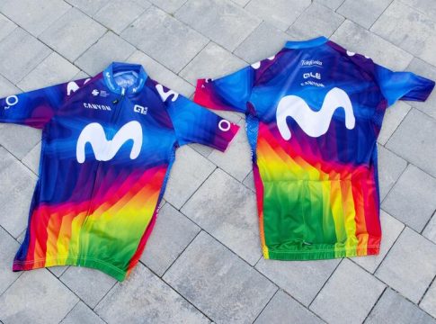 El Movistar Team vestirá esa prenda solidaria en la primera prueba UCI WorldTour pospandemia. La Strade Bianche, la clásica italiana con sus conocidos tramos de tierra, servirá para mostrar al mundo un diseño elaborado por el artista Loris Gobbi y que Alé ha adaptado a la actual equipación que lleva el equipo patrocinado por Telefónica.